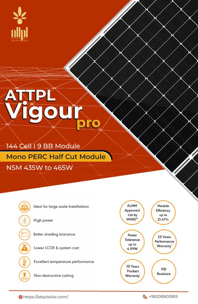 In conclusion, if you are looking for a high-performance solar panel that provides maximum efficiency, durability, and reliability, the ATTPL Vigour Pro 9 BB – 144 Cell solar panel is an excellent choice. It is designed to provide clean and sustainable energy for many years, making it an excellent investment for anyone looking to reduce their carbon footprint and save money on energy costs.