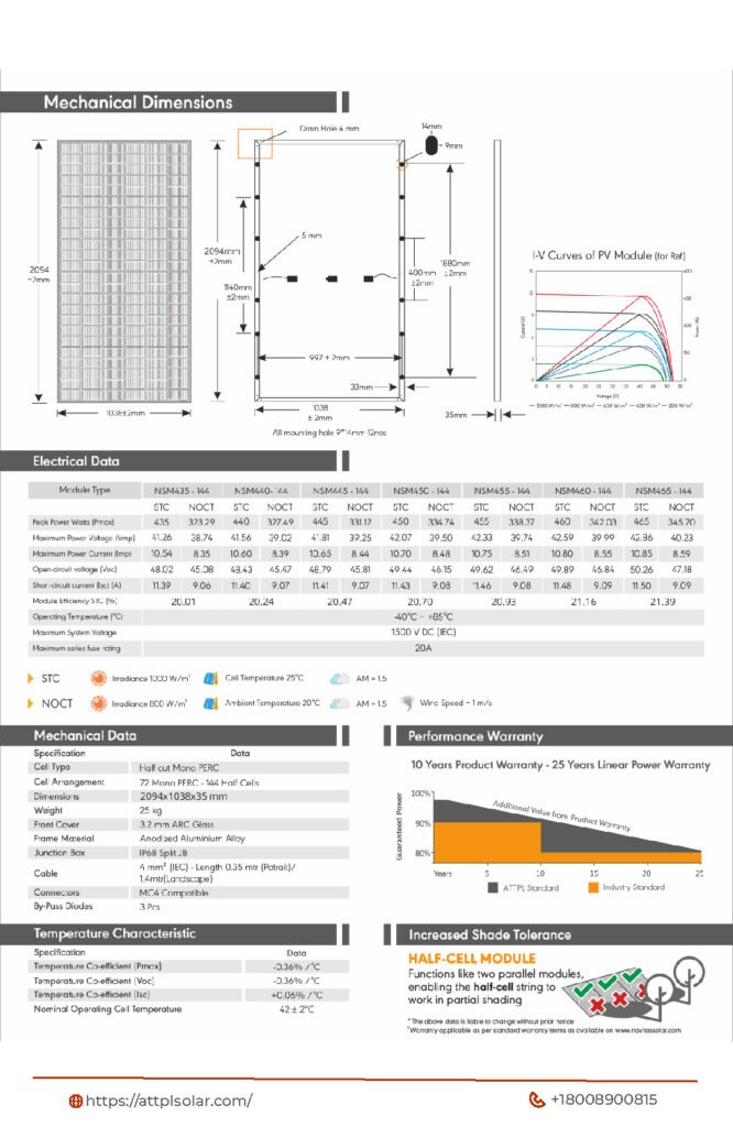 The ATTPL Vigour Pro 9 BB – 144 Cell solar panel is easy to install and comes with a 25-year power output warranty and a 10-year product warranty. The panel has a high power output capacity of 425-450 watts and is suitable for a wide range of solar power applications, including residential, commercial, and industrial projects.